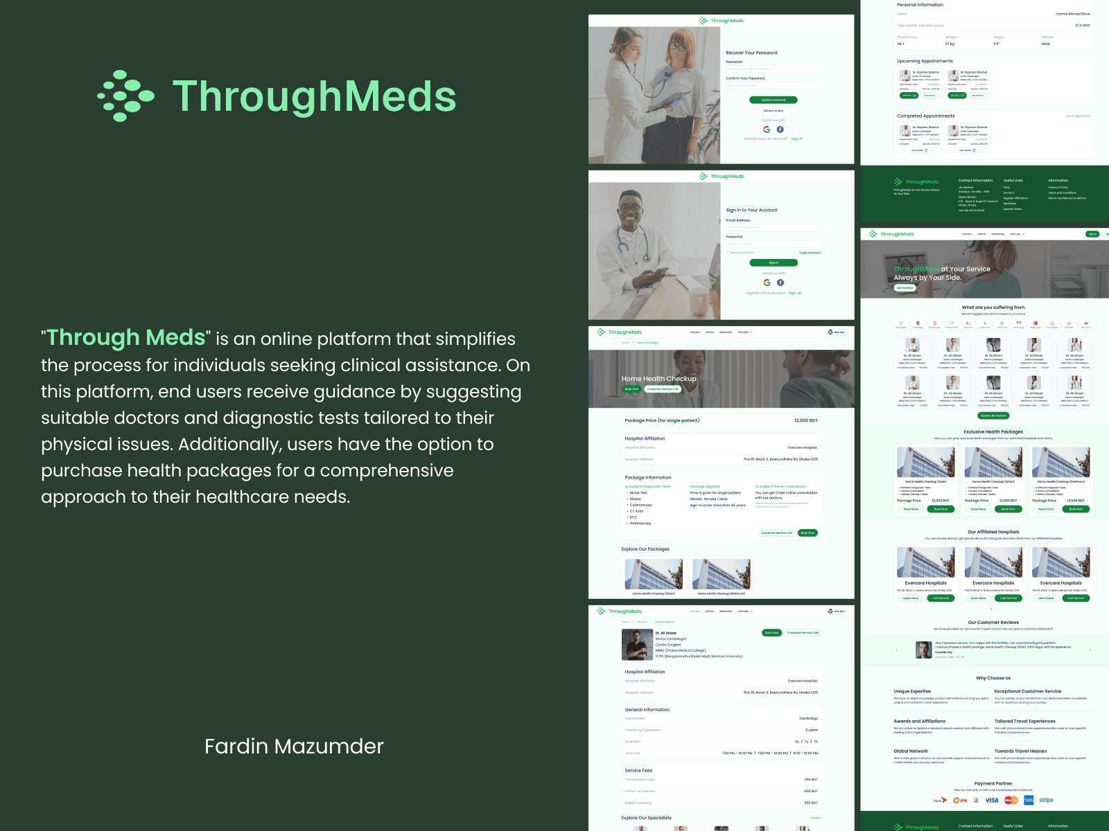 "Through Meds" is an online platform that simplifies the process for individuals seeking clinical assistance. On this platform, end users receive guidance by suggesting suitable doctors and diagnostic tests tailored to their physical issues. Additionally, users have the option to purchase health packages for a comprehensive approach to their healthcare needs.